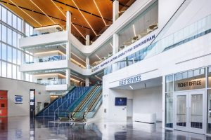 In February 1999, the facility was renamed the BJCC Arena. Improvements over the years included the opening of the BJCC Arena Club, the installation of 119,000 square feet of acoustic panels to enhance sound quality, and the addition of a 150-foot skywalk connecting the Arena to the Sheraton Birmingham Hotel.