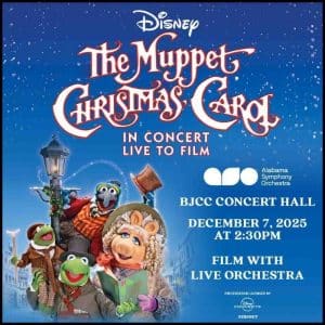 Celebrate the holiday season with The Muppet Christmas Carol in Concert, presented by the Alabama Symphony Orchestra. Enjoy the classic film projected on the big screen as the orchestra performs the heartwarming score live. Join Kermit, Miss Piggy, Gonzo, and the rest of the Muppets as they bring Charles Dickens’ timeless tale to life with…